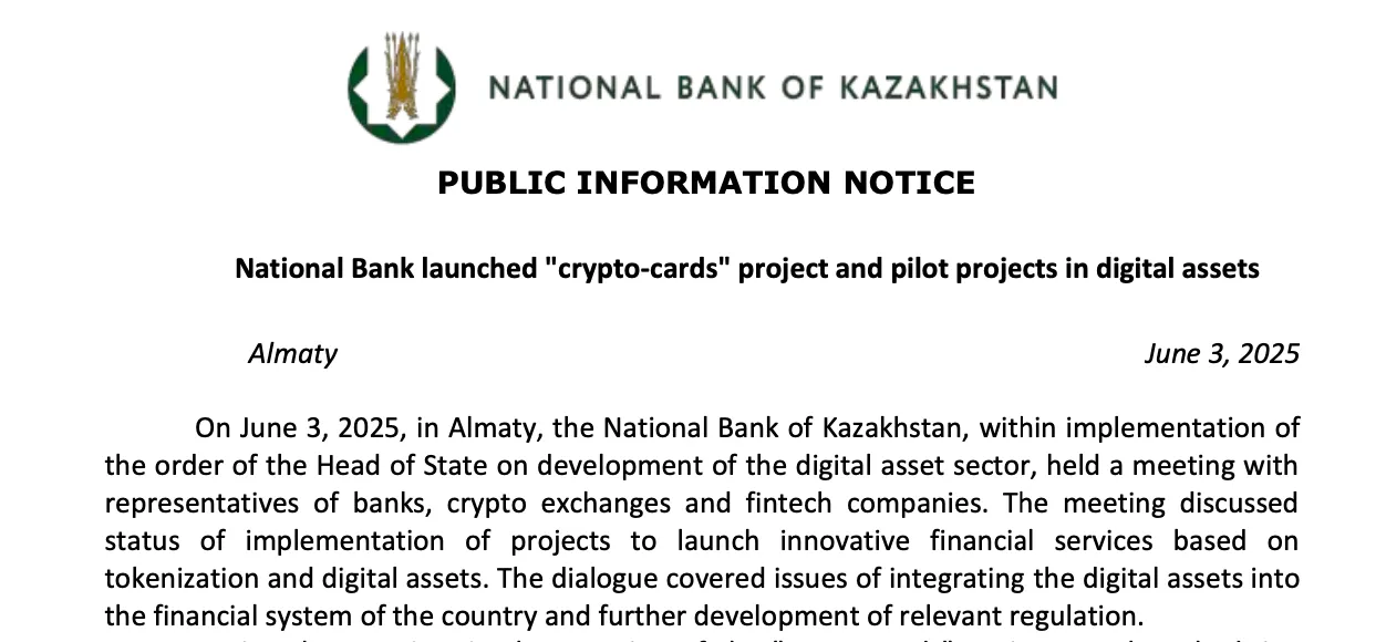On June 3, 2025, the National Bank of Kazakhstan launched a "crypto-cards" project and several pilot initiatives in digital assets as part of a broader push to develop the country's digital asset sector1. The "crypto-card" allows consumers to make non-cash payments by linking traditional payment cards to crypto wallets managed by licensed providers at the Astana International Financial Center (AIFC). When a payment is made, the client’s digital assets are instantly sold on the AIFC crypto market, and the equivalent value is credited to the card in fiat currency, enabling seamless integration of digital assets into Kazakhstan’s existing payment infrastructure. The announcement also outlined plans for pilot projects such as issuing stablecoins backed by the national currency, tokenizing financial assets and real estate, improving systems for collateral and storage of digital assets, and expanding services for crypto asset exchange and custody.