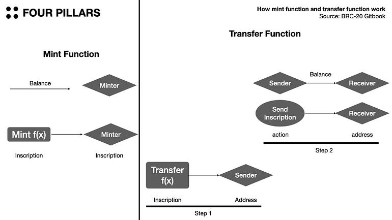 You can creat, mint, and transfer BRC-20 tokens by inscribing three functions in sats: Deploy, Mint, and Transfer.