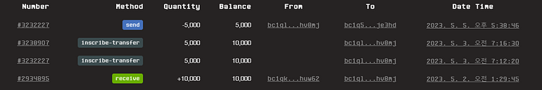 BRC-20 (Bitcoin Request for Comment) is an experimental token standard proposed by domo in March 2023 that allows anyone to issue and send FTs on the Bitcoin network via text inscription by Ordinals. For reference, unlike ERC-20, where tokens can be issued and transmitted immediately after deploying a smart contract, BRC-20 assumes that tokens are not actual tokens, but are created based on a specific format recorded in sats. Therefore, as with Sats Names, separate indexing is required to know the status or balance of BRC-20 tokens.