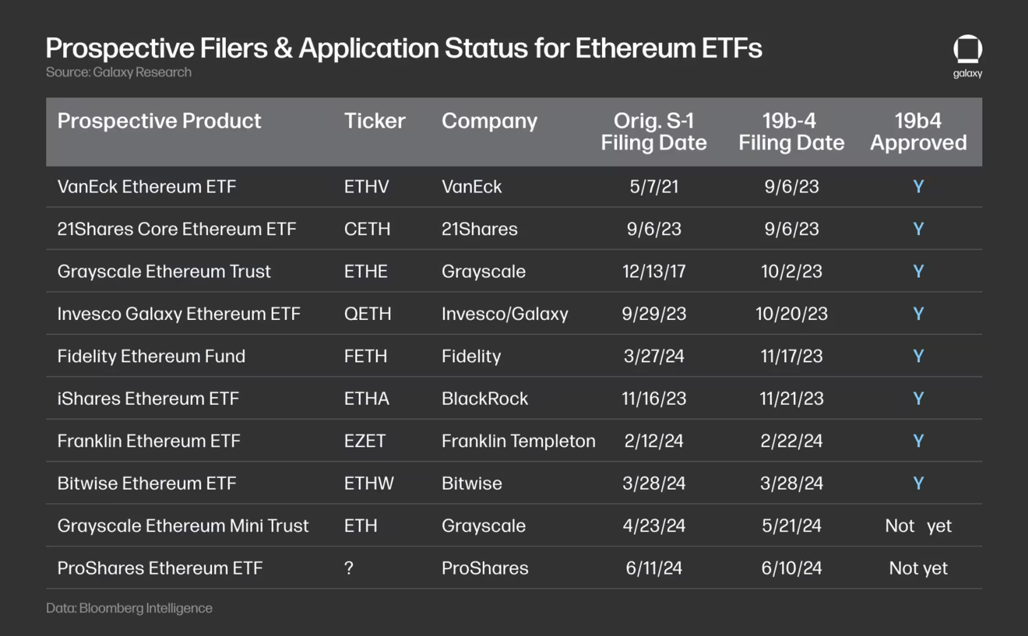 The rule change required ETF issuers to update their 19b-4 forms, which are used to propose new rules or changes to existing ones for self-regulatory organizations like stock exchanges. While the SEC approved these forms for eight spot Ethereum ETFs, including those from Bitwise, BlackRock, and VanEck, the issuers still need to gain approval for their individual S-1 registration statements before trading can officially begin.