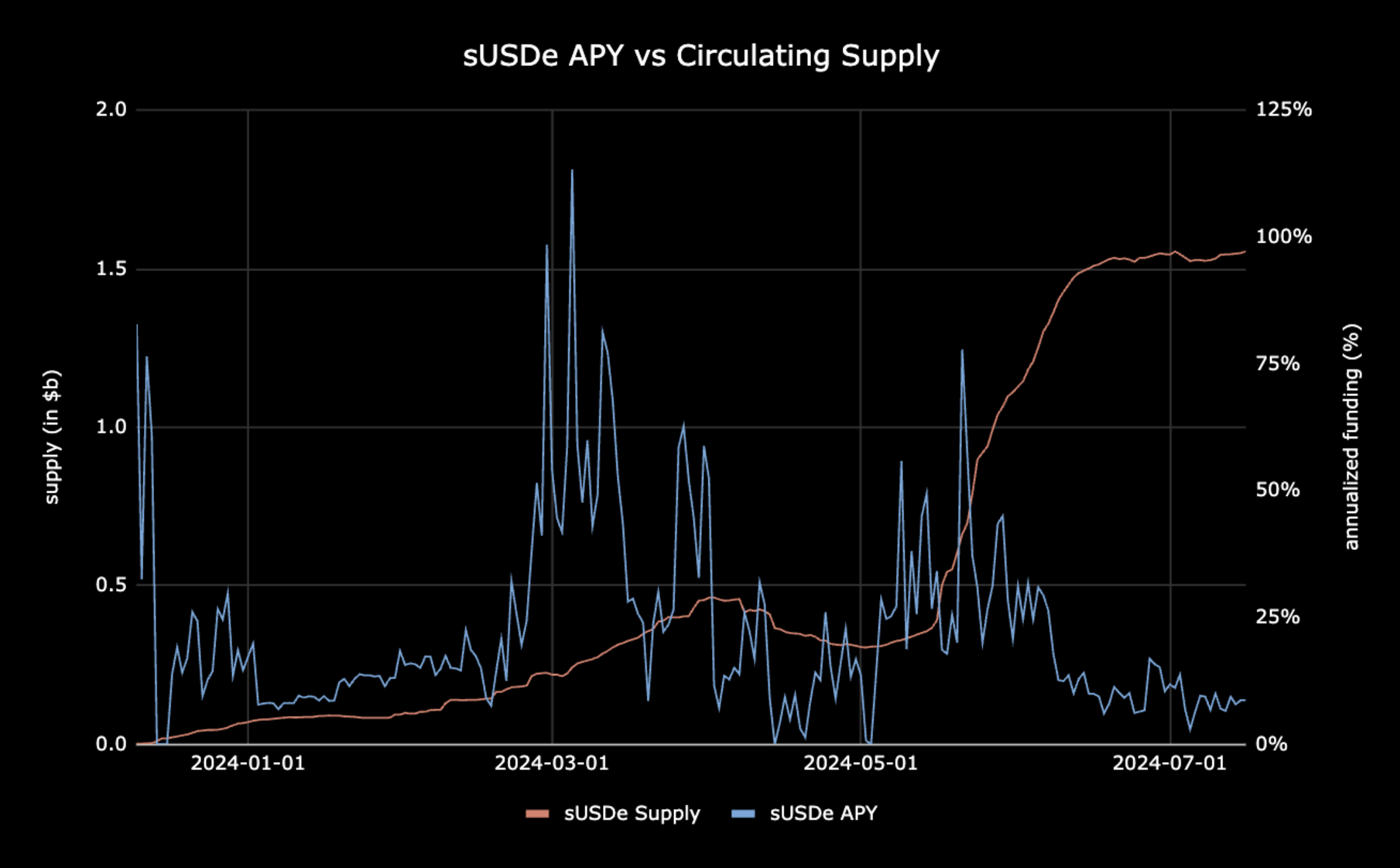 The approval of a spot Ethereum ETF could potentially make sUSDe an attractive option for investors, drawing parallels from the recent Bitcoin ETF approval experience. Also, the approval would likely bring more institutional capital into the Ethereum ecosystem, potentially increasing the demand for dollar-denominated yield-generating assets like sUSDe. As a synthetic dollar offering high yields, sUSDe could become an attractive option for investors looking to maintain USD exposure while benefiting from the growth in the Ethereum market.