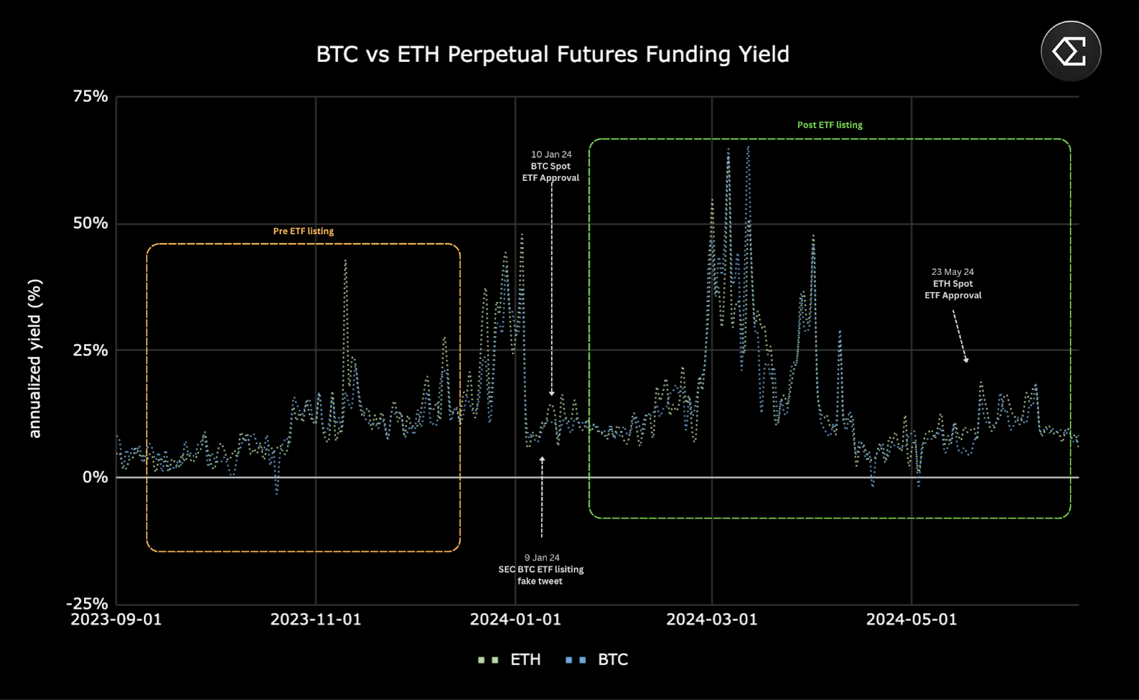 One of the key factors that could drive higher yields for sUSDe is the persistence of basis and funding rates in the perpetual futures markets. With the approval of Ethereum ETFs, there's an expectation of improved demand for perpetual contracts, as institutional investors may seek exposure to Ethereum through various financial instruments. This increased demand could lead to a sustained positive funding rate environment, benefiting holders of sUSDe who can potentially earn additional yield from these funding payments.