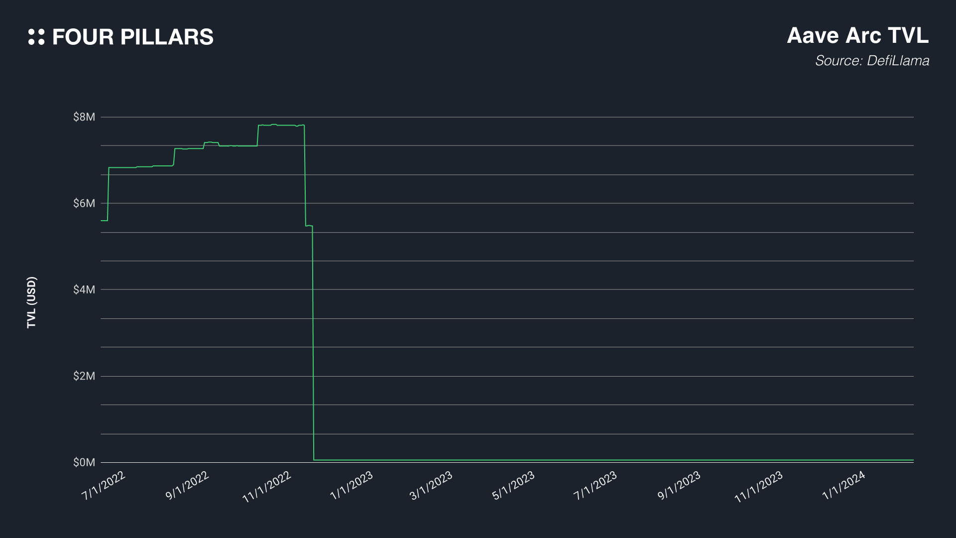 Unfortunately, despite initial significant fund utilization, the TVL in Aave Arc plummeted following the bankruptcy of FTX in November 2022 and the impact on many institutions. The sharp rise in U.S. interest rates in 2022 also contributed to the declining demand for DeFi. Currently, only about $58k is deposited in Aave Arc, which seems like no one is using now.