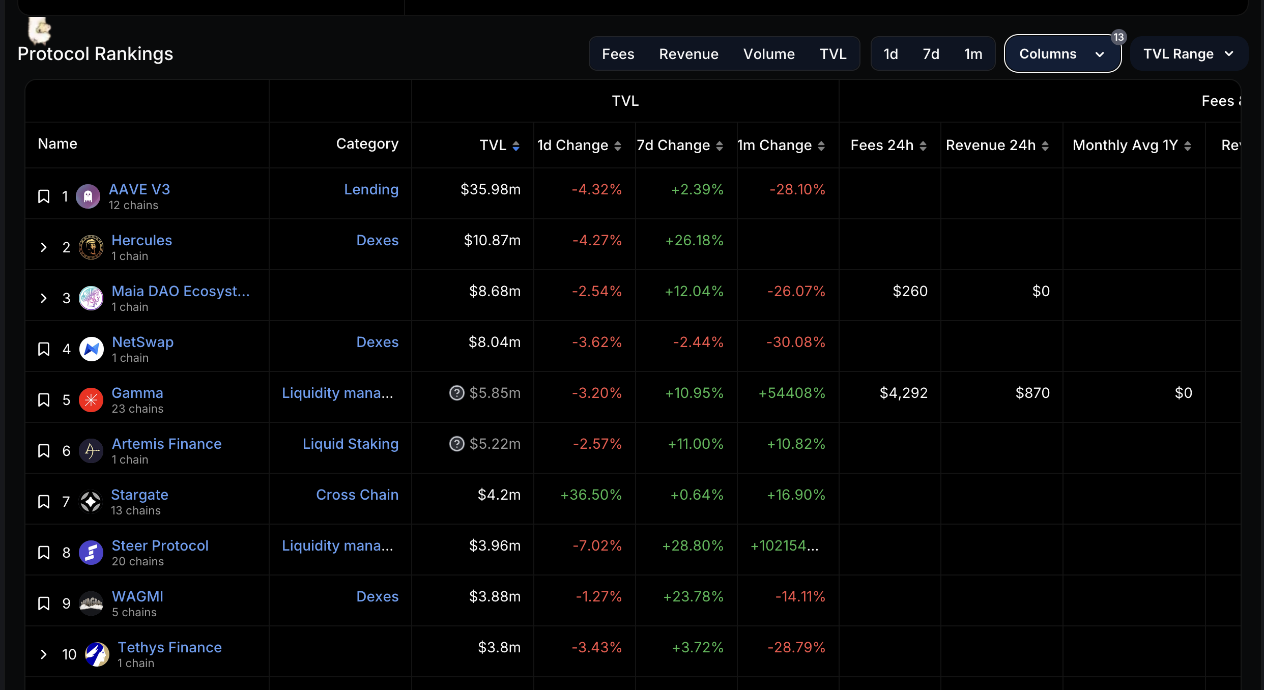 Metis, with its lengthy history, boasts a relatively rich ecosystem. Major DeFi and bridge protocols from the EVM ecosystem, like Aave V3, Gamma, Stargate, Beefy, and Synapse, are already onboarded. Additionally, projects uniquely deployed on Metis, such as Hercules, NetSwap, and Artemis Finance, are top-tier in terms of TVL, indicating a robust and independent ecosystem.