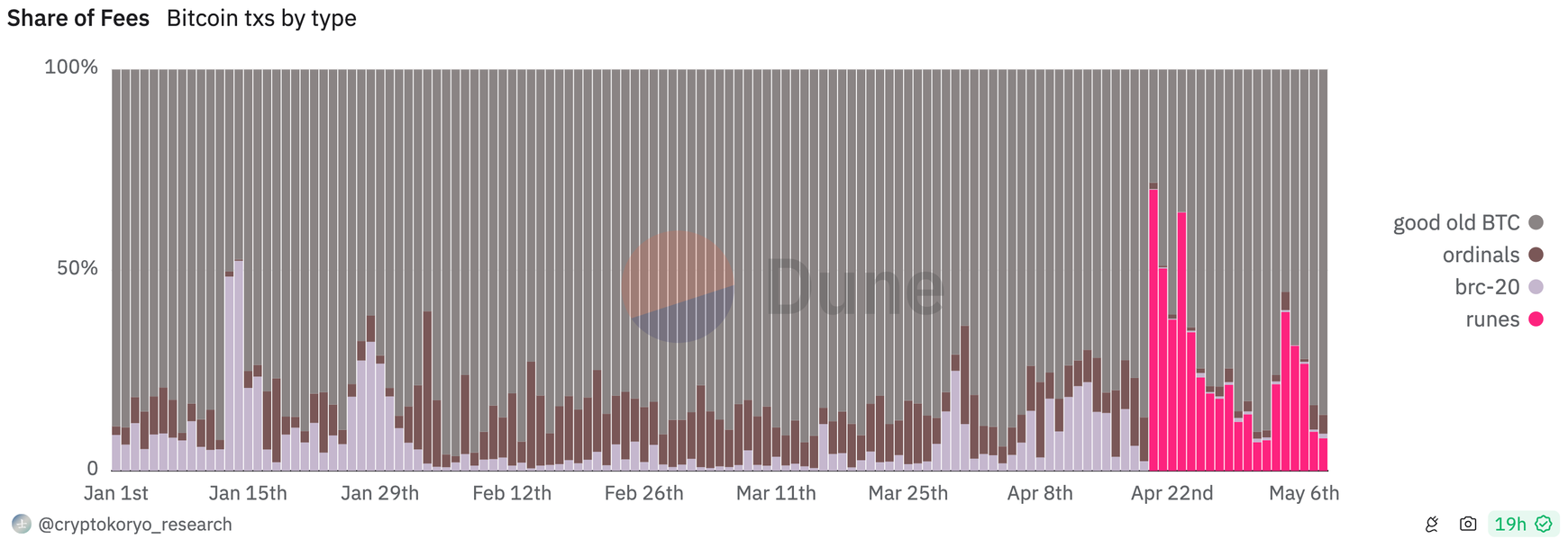 - 1.3 Runes Protocol accounts majority of the Bitcoin Fee