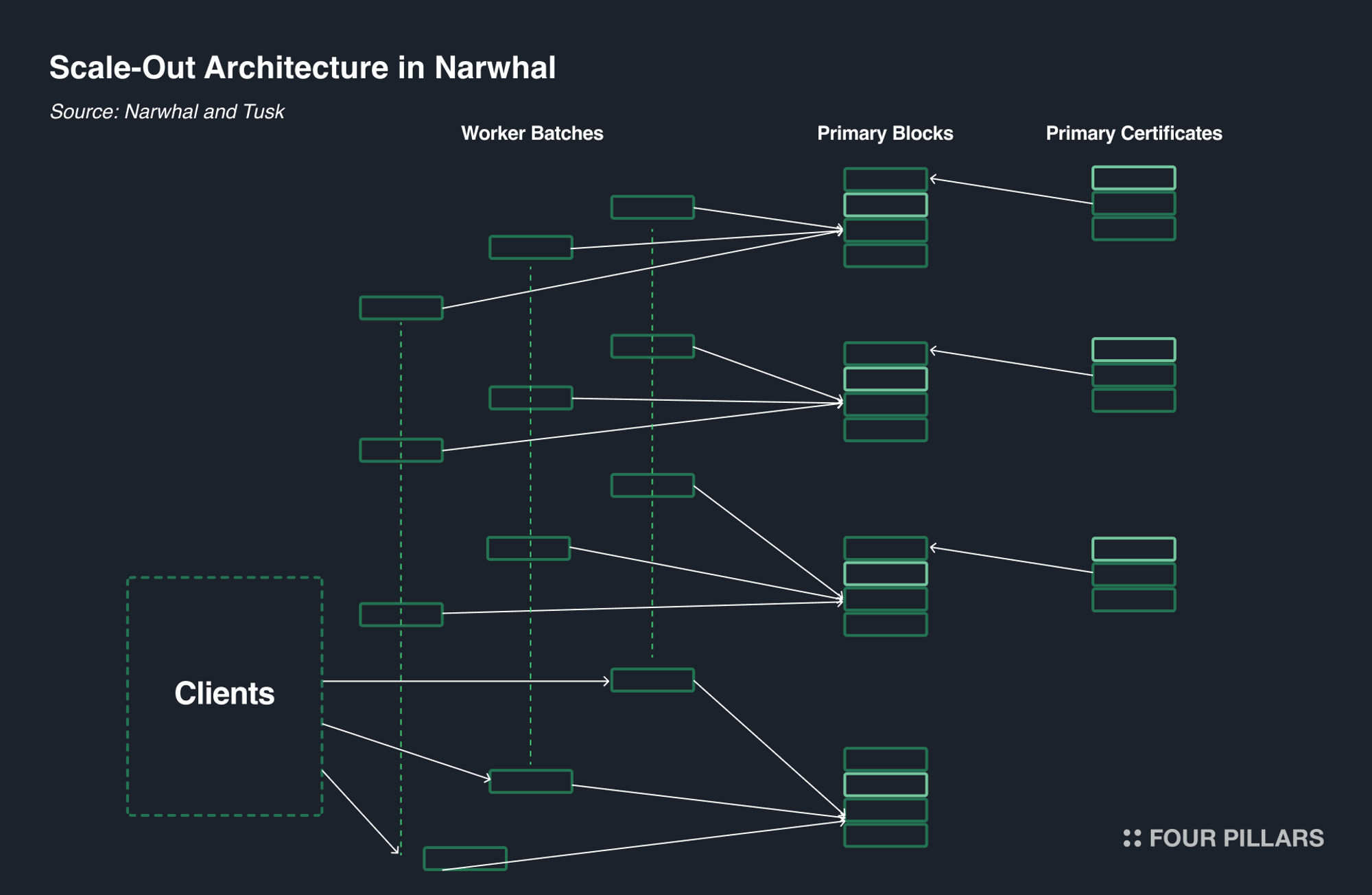 To explain more simply, in Sui, which uses Narwhal as its mempool protocol, validators can add worker machines according to the real-time demand on the network. This theoretically eliminates the problem of transaction throughput. If there is a sudden surge in transactions, validators can add more worker machines to process them. Conversely, if transaction demand decreases, they can reduce the number of worker machines to optimize costs. Therefore, in Sui, the scalability issue is virtually non-existent.