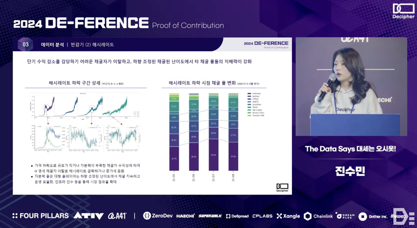 No matter how public and transparent it is, interpreting raw, anonymous on-chain data with countless transactions and deriving actionable plans from it is not an easy task. The presentation by the O-siot team effectively conveyed to the public the dynamics of the Bitcoin mining market, which holds significant influence over the crypto industry due to its substantial share of market liquidity, through easily understandable infographics.