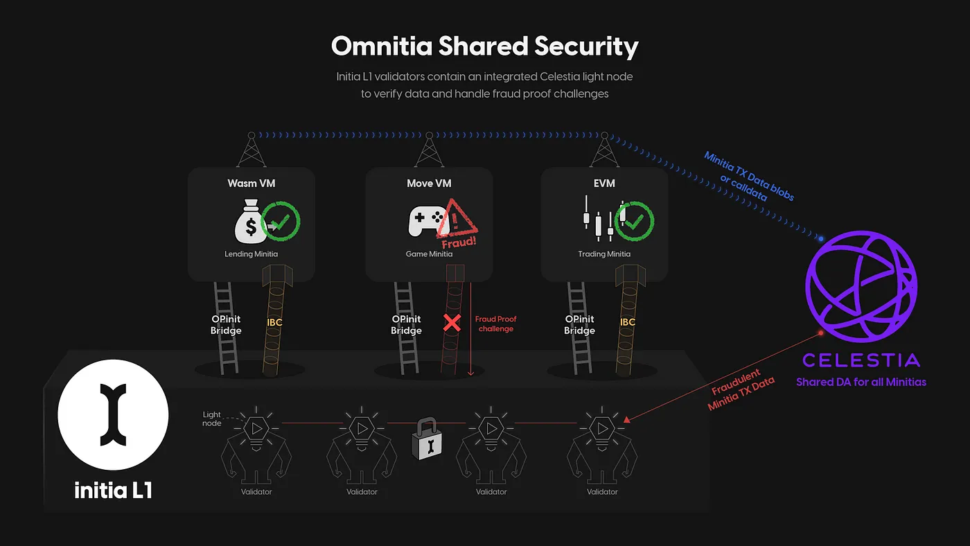Initia는 낙관적 롤업을 사용하여, 메인 체인에서 한 번만 검증되면 되기 때문에 트랜잭션이 효율적이고 빠르다. 또한, 외부 브리지 또는 오라클 서비스에 의존하지 않기 때문에 Initia는 향상된 보안을 제공한다.